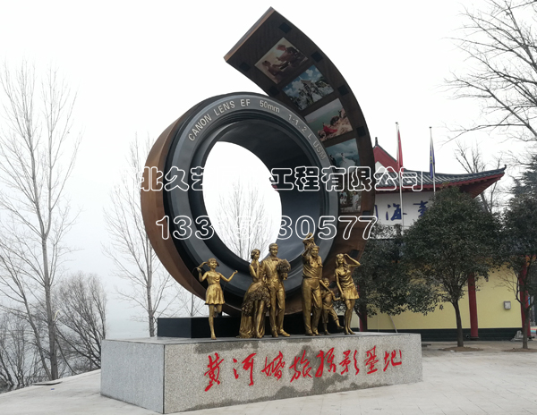 河北久藝園林為河南三門峽制作的攝影人物銅雕安裝完成。